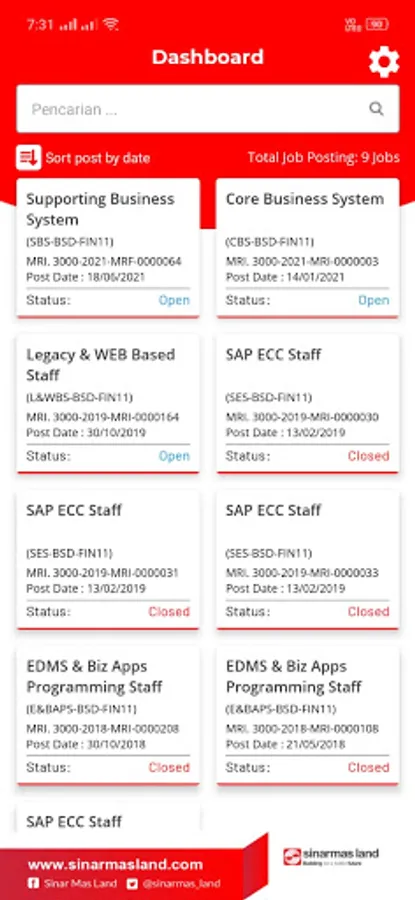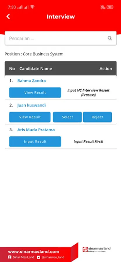 Sinar Mas Land Career Mobile Application for Hiring Manager.