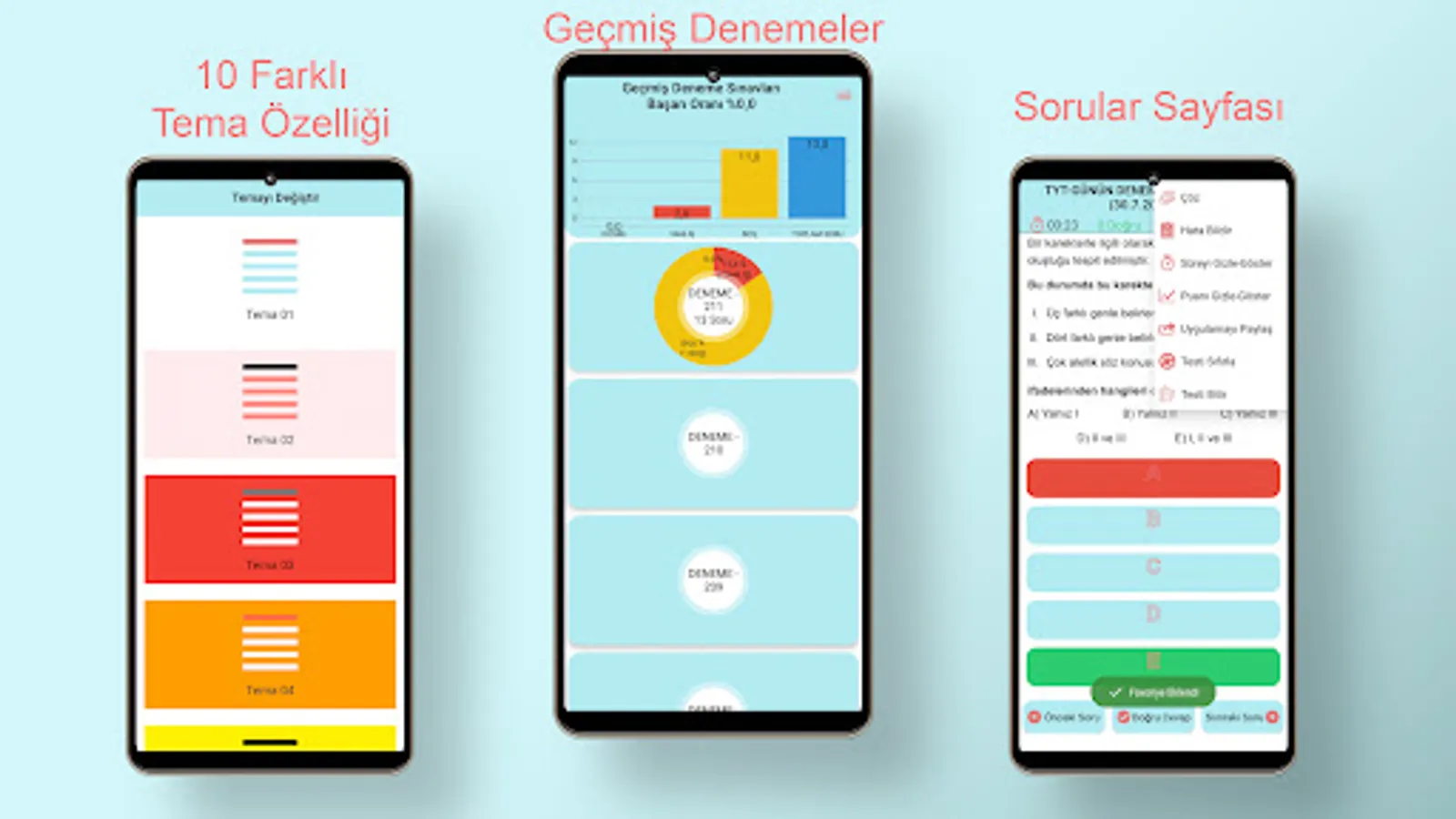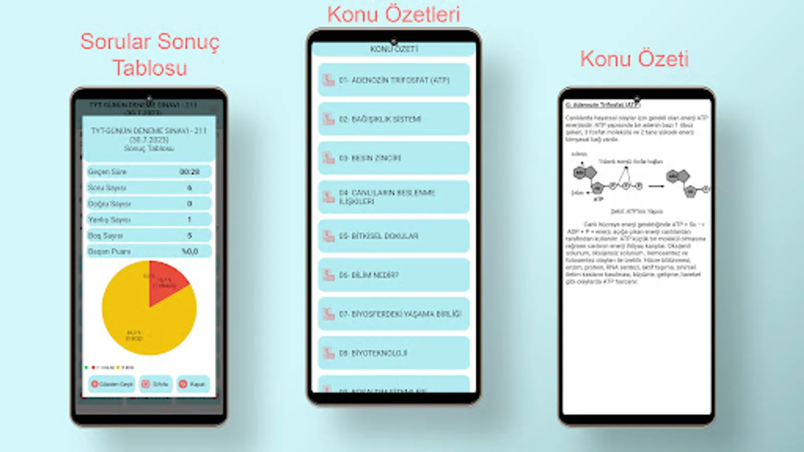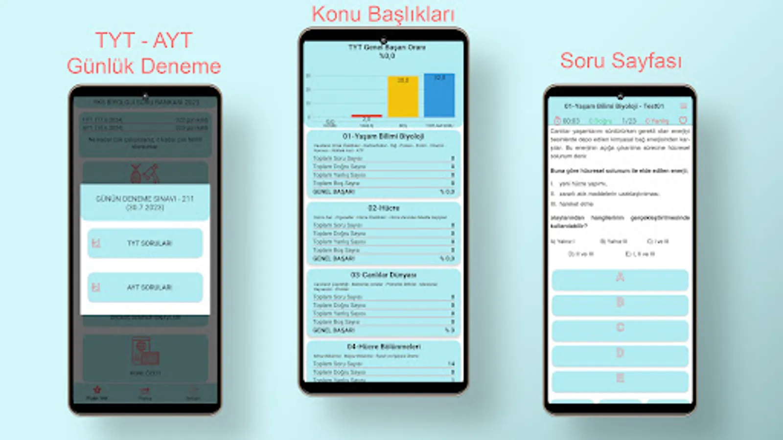 The questions in the application have been prepared by subject experts and are similar to the questions in the university exams in Turkey. Therefore, by solving the questions in the application, students can encounter questions similar to those they will encounter in the exam.