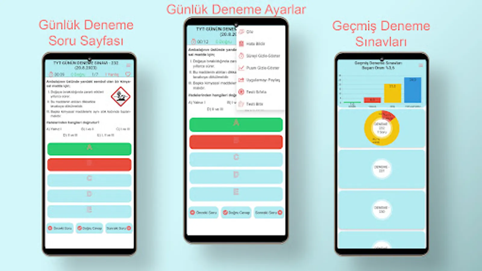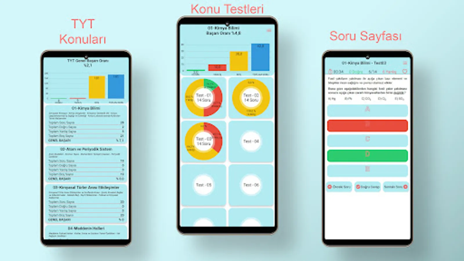 The questions in the application have been prepared by subject experts and are similar to the questions in the university exams in Turkey. Therefore, by solving the questions in the application, students can encounter questions similar to those they will encounter in the exam.