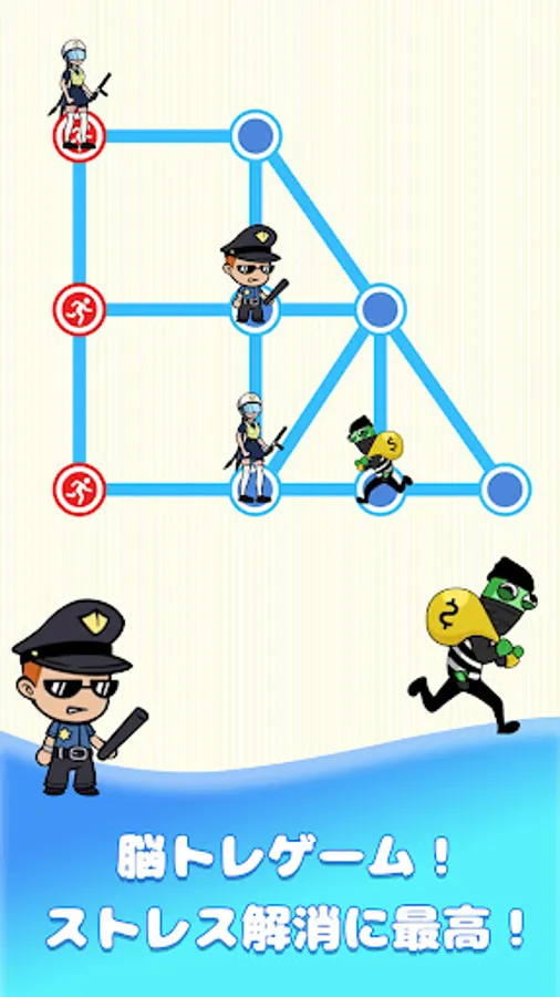Move the guards to catch the escaping thief. Guards and thieves can only move one step each round until the guards surround the thief. Therefore, to catch a thief, you need to carefully plan all your actions.