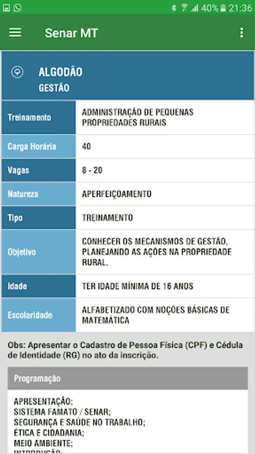 The Senar-MT also performs 13 Special Programs focused on property management, safety, entrepreneurship, care for people with special needs, citizenship and digital inclusion.