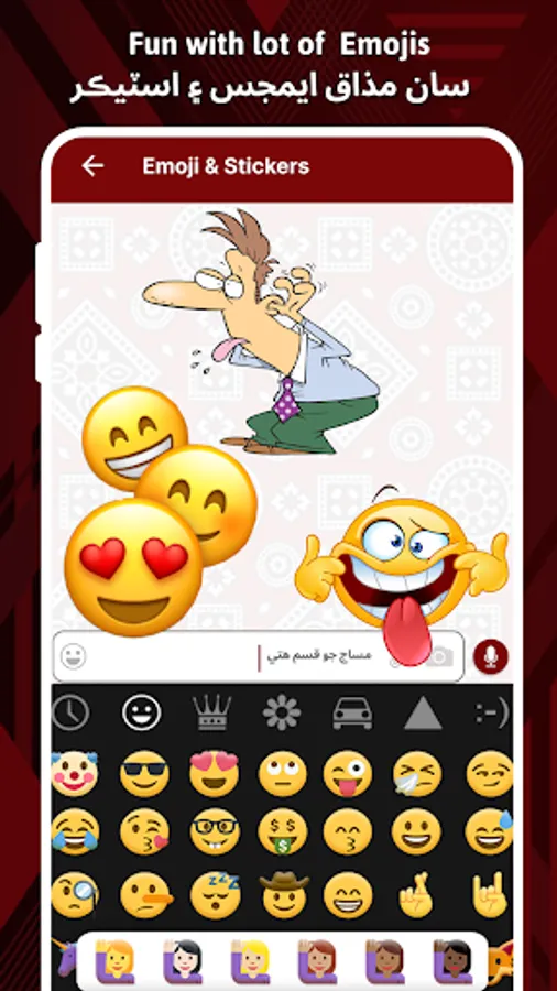 Don't be get worried about installation of different phonetic kiboards just stay with easy Sindhi Keyboard, the matchless Urdu Sindhi English Keyboard. Also start chatting with your friends through Sindhi Urdu English keyboard with cute emojis, it has given you free hand to send similes and emojis to your friends.
