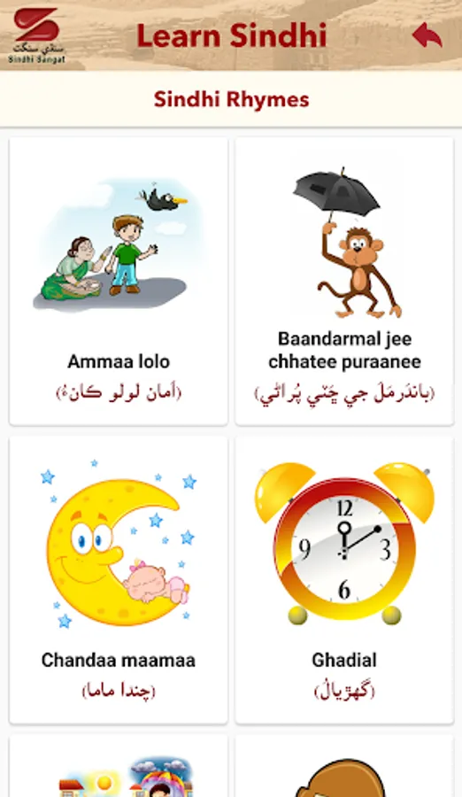 Sindhi Sangat has produced a very simple to use Sindhi Learning App " Learn Sindhi" . The Learn Sindhi app is available on Android devices as well as iOS devices. The Learn Sindhi app contains animations, voice, games which make it fun to Learn and practice basics of the Sindhi language. The app also encourages users to register and they can be part of the Sindhi language community.