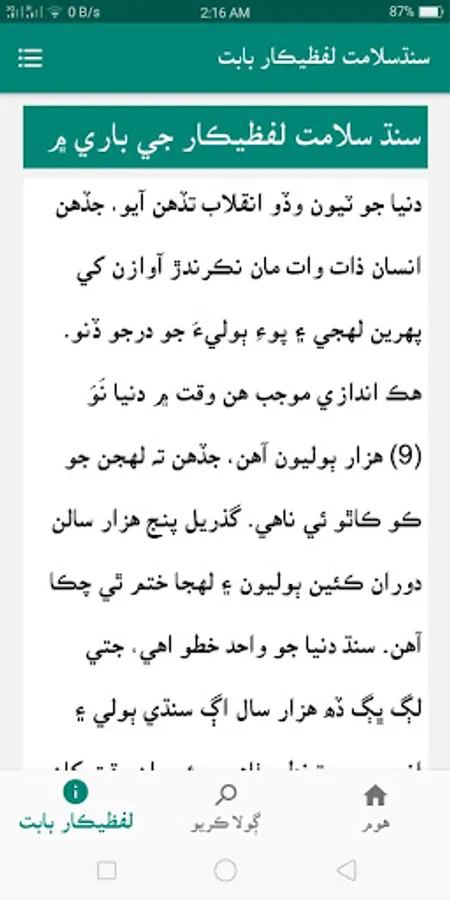 Lafzikar is term of Sindhi language which means to create new word from giving suggestio, so Sindhsalamat has developed this tool by collecting a hugae corpus of Sindhi language. This tool was developed in 2018 and is online at lafzikar.sindhsalamat.com from the day of launching it. this is helpful application for those who want to research on words of Sindhi language and for poets to generating rythem of words using it. Sindhsalamat is launching its first version of this Lafzikar application that has few features mentioned below: