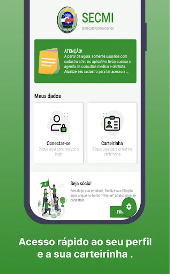 Today, SECMI is the only union in the interior of Bahia that offers medical and dental services at its headquarters, in addition to several agreements with clinics, with colleges: Faculdade de Ilhéus, FTC, Unime and, in the future, Unopar, all of this, to give a better living conditions for its union members