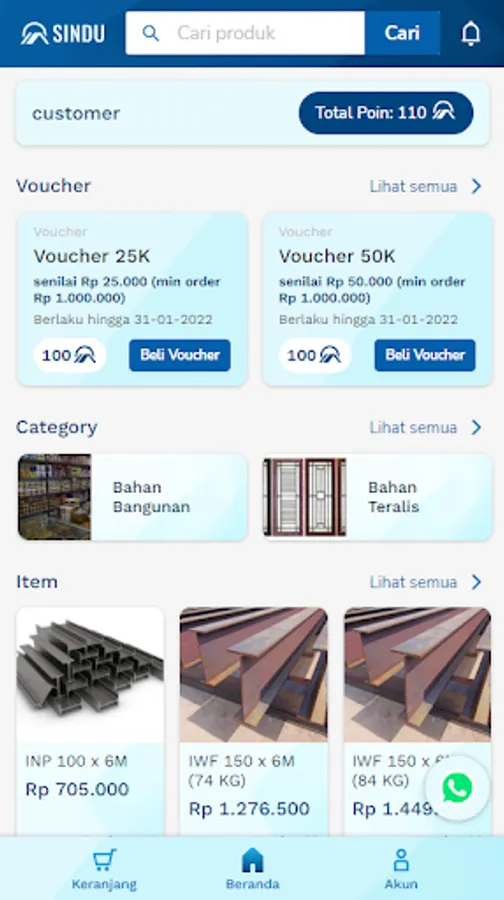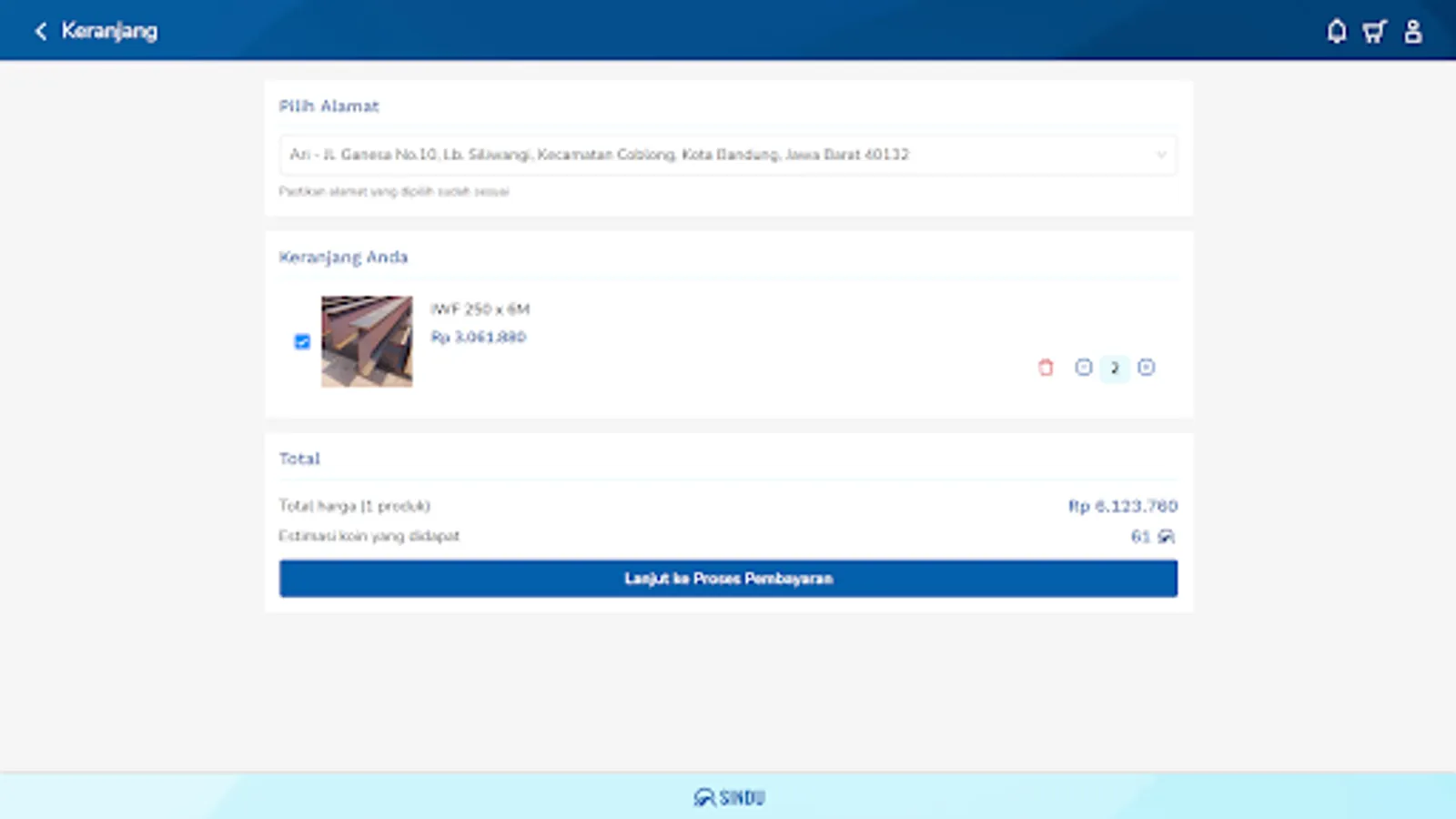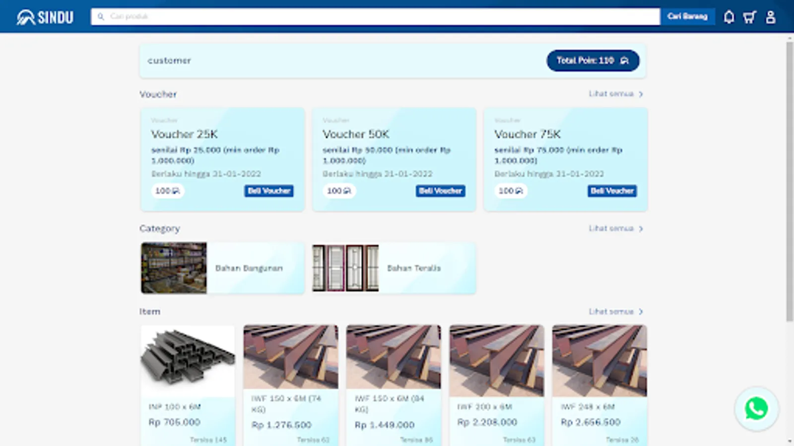 Sindu adalah aplikasi e-commerce untuk toko bangunan Sinar Dunia. Anda dapat mendaftarkan diri menggunakan nomor handphone dan kemudian dapat memesan barang menggunakan aplikasi ini.