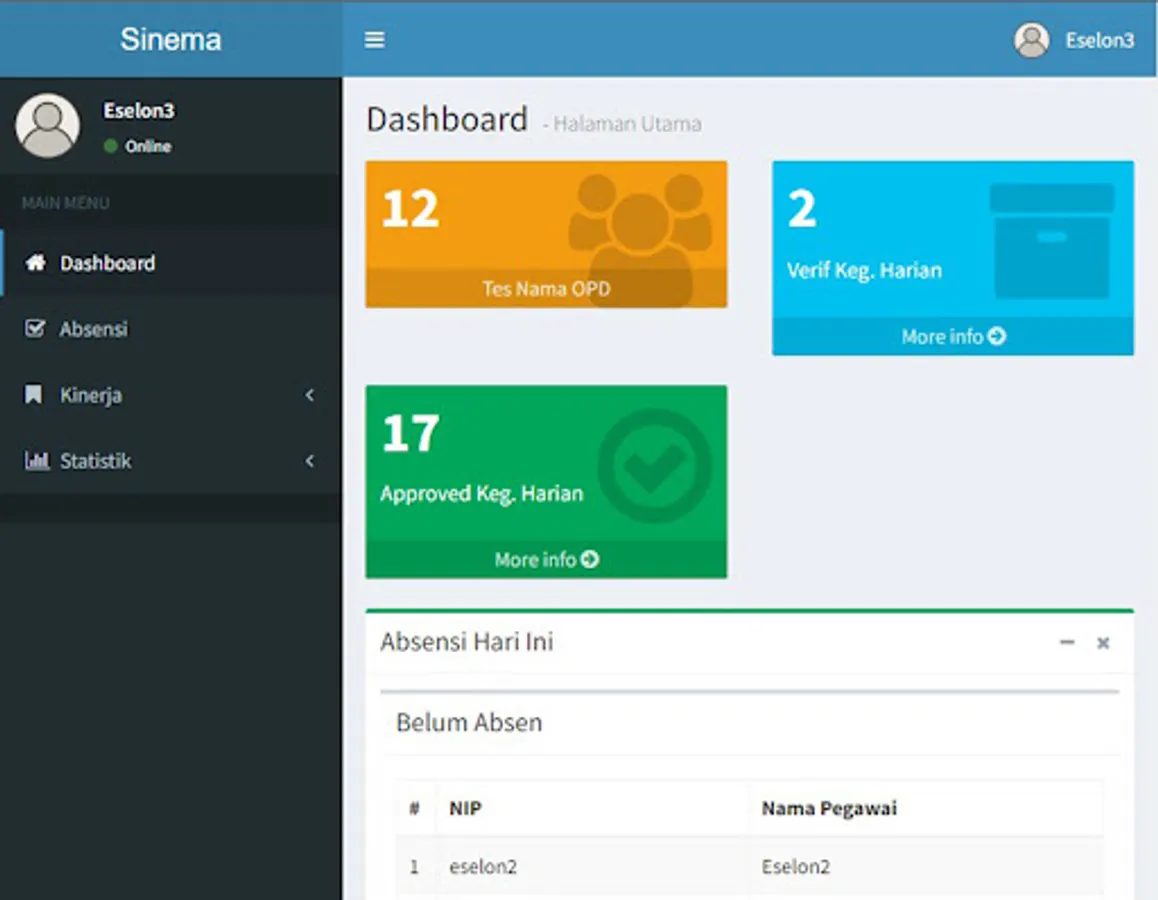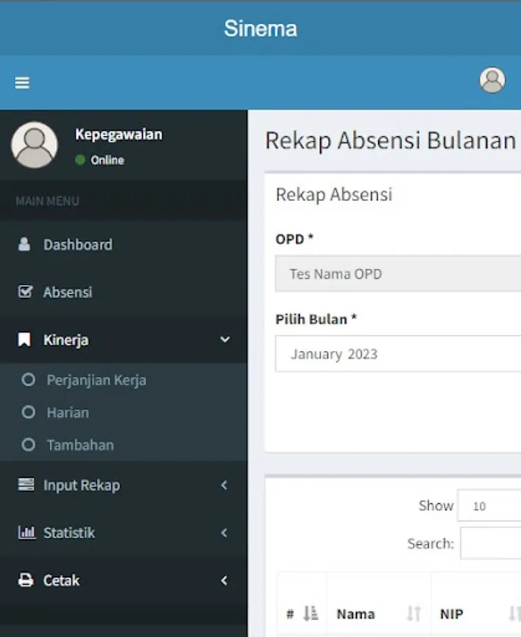 Cinema (Employee Performance Monitoring Information System) is an application that provides an output of performance activity values consisting of individual daily activity achievements.