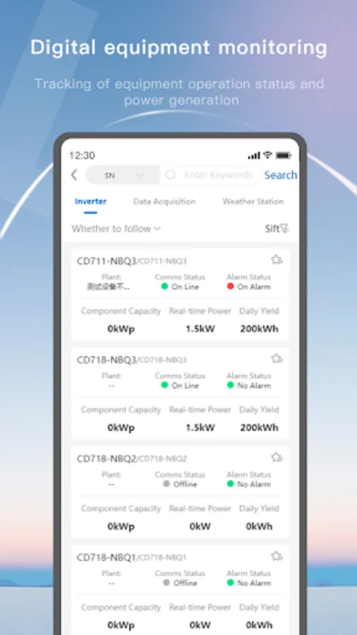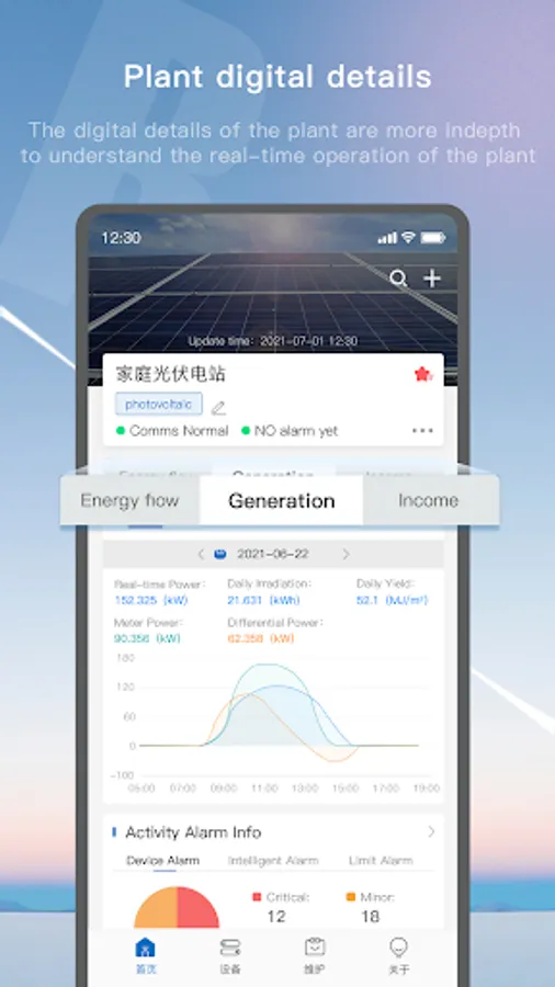EnjoySolar is an APP tailored for products offered by Sineng Electric Co. Ltd. Through the App, plant owners can access statistics on power generation and revenue anywhere and anytime. Additionally, it provides up-to-date information about the maintenance status and the equipment’s performance. With various features like the message center, local commissioning and personal settings, the App helps plant owners process data better and have a comprehensive understanding of the plant’s operation.
