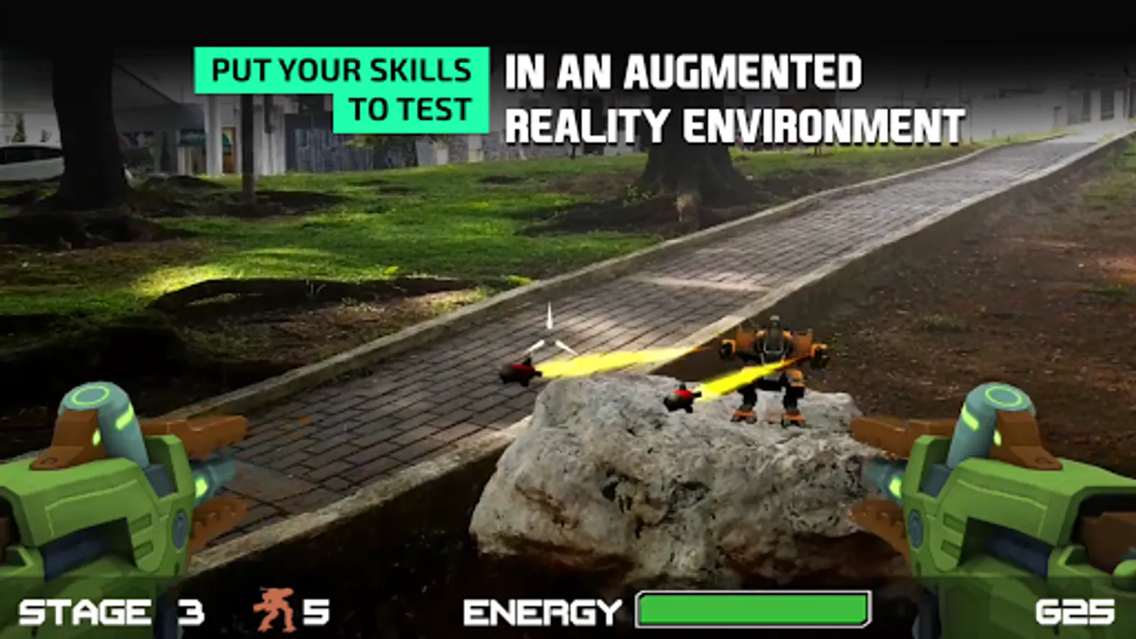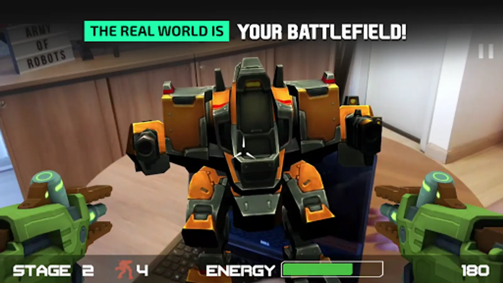Army of Robots is an Augmented Reality game. The robots will invade your street and try to dominate your home.