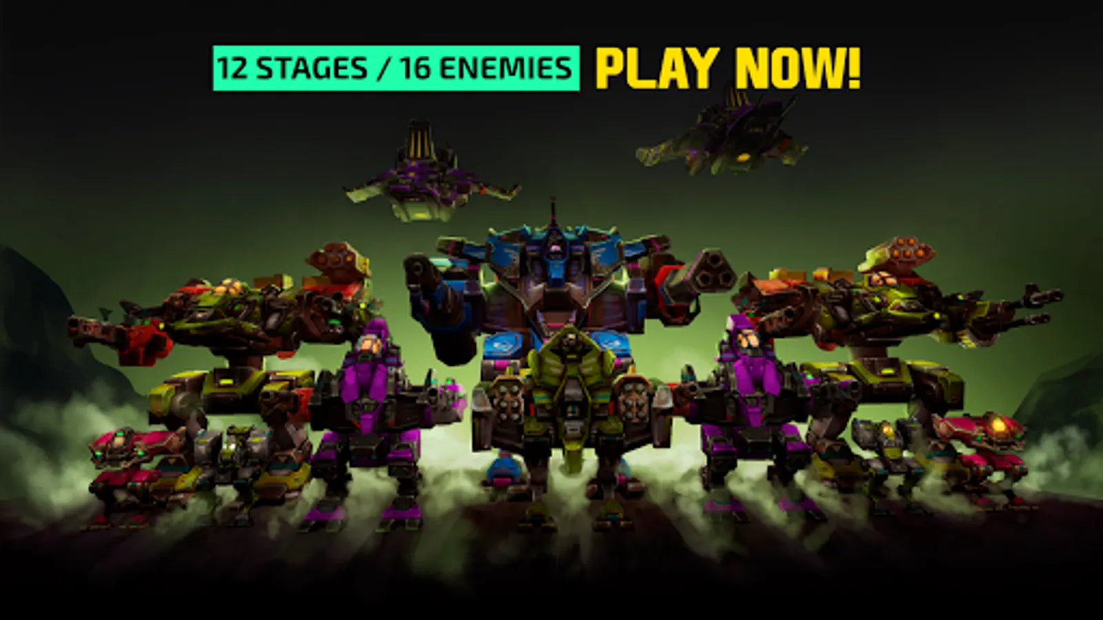 - Fight robots to save earth over 12 stages