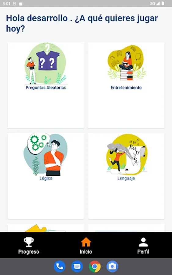 You have to select different categories of games, such as question and answer games, mathematical operations, ordering sentences and series, puzzles... you will always stay active.
