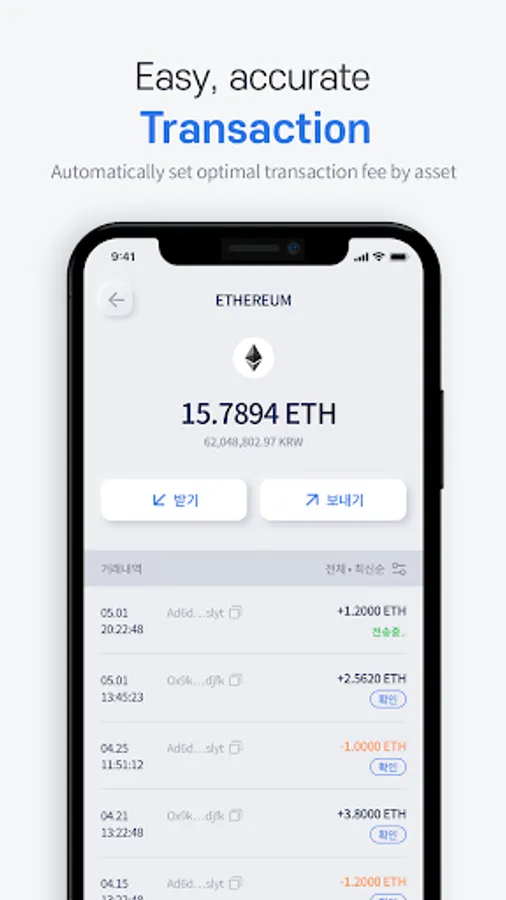 4. Safe management: For security, it provides strong security features such as biometric (fingerprint, iris, etc.) and Touch ID support, and does not store private keys or personal information. Provides options for easy backup/recovery of private keys/transaction history, etc.