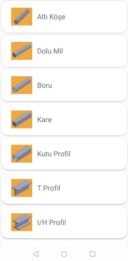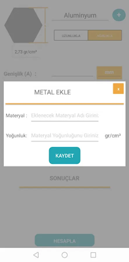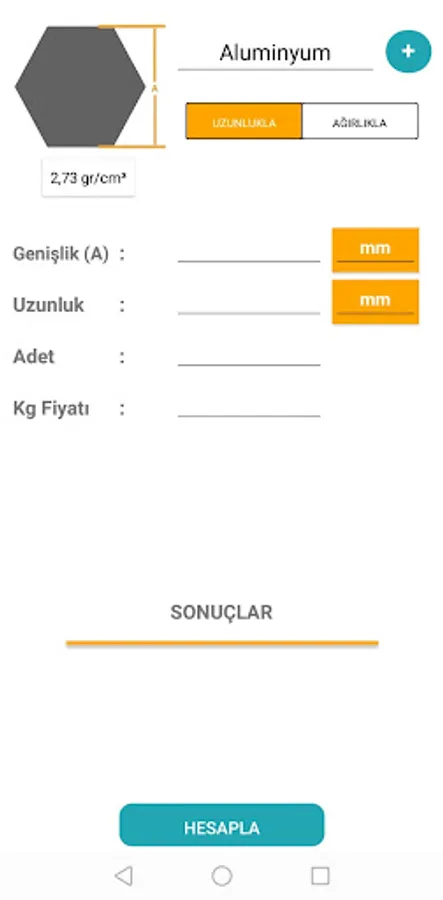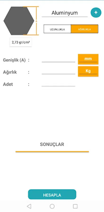 Materials for weight calculation: