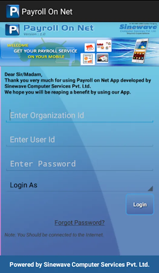 Sinewave Computer Services Pvt. Ltd. Developed App of Payroll On Net. Paywhiz Professional user can use same as add in functionality.