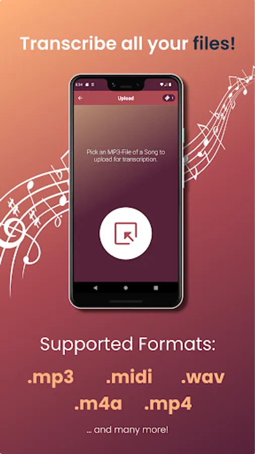 Transcribe music recordings from YouTube, MP3 or microphone to sheet music and edit them online.With the Melody Scanner App you can create on-the-go recordings of your instrument. Those are uploaded to your personal cloud songbook and transcribed to score.