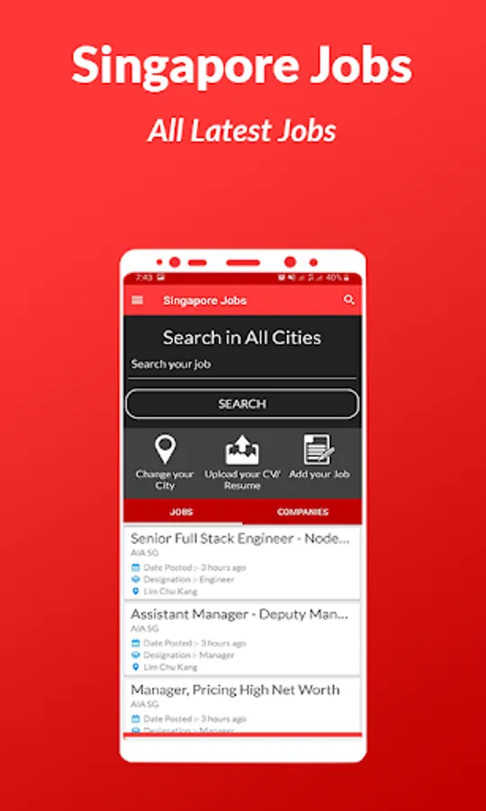 This app allow to companies thay can post free job & find qualified employees for their designation. Download Jobs In Singapore today and get your dream job.