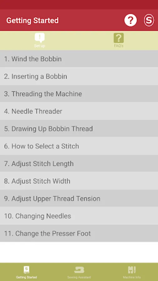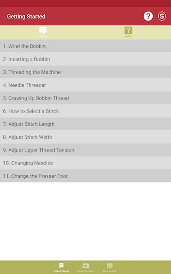 In this section of the app you will get acquainted with your SINGER® sewing machine* and learn about: