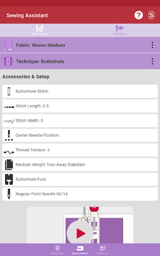 SINGER® proudly presents the new “SINGER® Sewing Assistant” app that has been custom developed for you who are new to sewing but are eager to get started with your new SINGER® sewing machine. Supporting several of the SINGER® sewing machine models*, this app is a true helping hand that will educate and guide you through the machine, help you learn how to get started, how to sew and on top of that, get good quality. Once you download the app you will also get custom made sewing tutorials for your specific sewing machine and get help to discover new sewing skills along the way. With step-by-step instructions and animations it has never been easier! Read more about each section of the app below.