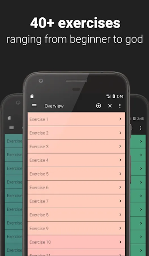 • Choose between 40 exercises with 10 sets each ranging from beginner to god.