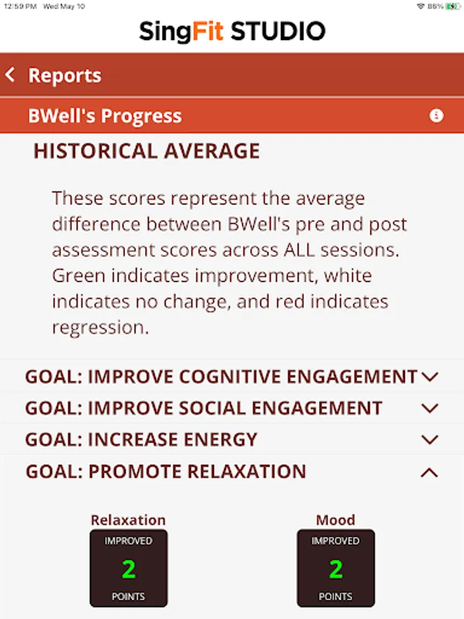 Our app provides person-centered care through individualized therapeutic music sessions based on the user’s health condition, preferences, and targeted therapeutic goals. The SingFit algorithms utilize historical and real-time user data to produce the optimal therapeutic experience and outcomes.