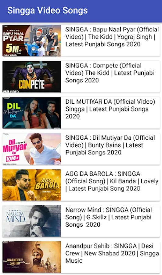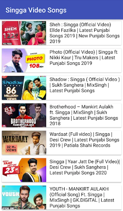 Singga (ਸਿੰਗਾ ) is amazing punjabi singer who has given amazing punjabi songs as a writer and singer.This app is to provide Singga's latest tracks to his fans along with videos.