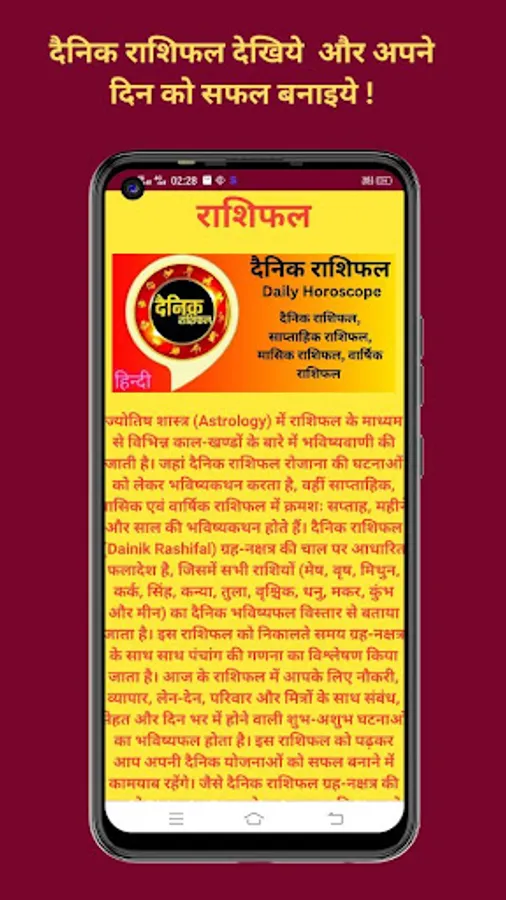 By calculating and analyzing the planetary positions and their impact on your zodiac sign, "Daily Horoscope" provides accurate and personalized predictions for various aspects of your life, such as career, relationships, health, and finance. This app goes beyond just horoscopes by incorporating the analysis of the lunar calendar and panchang (Hindu calendar) to enhance the accuracy of its predictions.