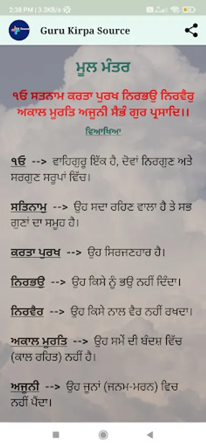 ਇਸ ਐਪ ਵਿੱਚ ਜਪੁਜੀ ਸਾਹਿਬ, ਜਾਪੁ ਸਾਹਿਬ, ਤਵ ਪ੍ਰਸਾਦਿ ਸ੍ਵੈਯੇ, ਚੌਪਈ ਸਾਹਿਬ, ਆਨੰਦ ਸਾਹਿਬ, ਰਹਿਰਾਸ ਸਾਹਿਬ, ਕੀਰਤਨ ਸੋਹਿਲਾ ਅਤੇ ਸੁਖਮਨੀ ਸਾਹਿਬ ਦੀ ਬਾਣੀ ਹੈ। ਇਸ ਐਪ ਨੂੰ ਵਰਤਣ ਤੋਂ ਪਹਿਲਾਂ ਇਹ ਧਿਆਨ ਵਿੱਚ ਰੱਖਿਆ ਜਾਵੇ ਕਿ ਜੇਕਰ ਹੋ ਸਕੇ ਤਾਂ ਗੁਟਕਾ ਸਾਹਿਬ ਤੋਂ ਹੀ ਪਾਠ ਕੀਤਾ ਜਾਵੇ ਇਸ ਐਪ (Guru Kirpa Source) ਨੂੰ ਉਸ ਸਮੇਂ ਹੀ ਵਰਤਿਆ ਜਾਵੇ ਜੇਕਰ ਤੁਹਾਡੇ ਕੋਲ ਗੁਟਕਾ ਸਾਹਿਬ ਉਪਲਬਧ ਨਾ ਹੋਵੇ। ਕਿਉਂਕਿ ਬਾਣੀ ਲਿਖਦੇ ਸਮੇਂ ਅਨੇਕਾਂ ਤਰ੍ਹਾਂ ਦੀਆਂ ਗਲਤੀਆਂ ਭੁੱਲਾਂ ਚੁੱਕਾਂ ਹੋ ਜਾਂਦੀਆਂ ਹਨ ਸੰਗਤ ਜੀ ਤੇ ਜੇਕਰ ਤੁਹਾਨੂੰ ਕੋਈ ਗਲਤੀ ਦਿਖਾਈ ਦੇਵੇ ਤਾਂ review ਵਿੱਚ comment ਕਰ ਕੇ ਦਸ ਦੇਣਾ ਸੰਗਤ ਜੀ ਜਲਦੀ ਤੋਂ ਜਲਦੀ ਉਸਨੂੰ ਠੀਕ ਕਰ ਕਰ ਦਿੱਤਾ ਜਾਵੇਗਾ ਜੀ। ਸ਼੍ਰੀ ਗੁਰੂ ਗ੍ਰੰਥ ਸਾਹਿਬ ਜੀ ਵਿਚ 6 ਗੁਰੂ ਸਾਹਿਬਾਨਾਂ ਦੀ, 15 ਭਗਤਾਂ, 11 ਭੱਟਾਂ ਅਤੇ 4 ਗੁਰਸਿੱਖਾਂ ਦੀ ਬਾਣੀ ਦਰਜ ਹੈ ਜੀ।