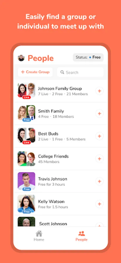 Set your status to let others know whenever you are free to connect. View others’ status to set up a gathering with confidence that you aren’t bugging them!