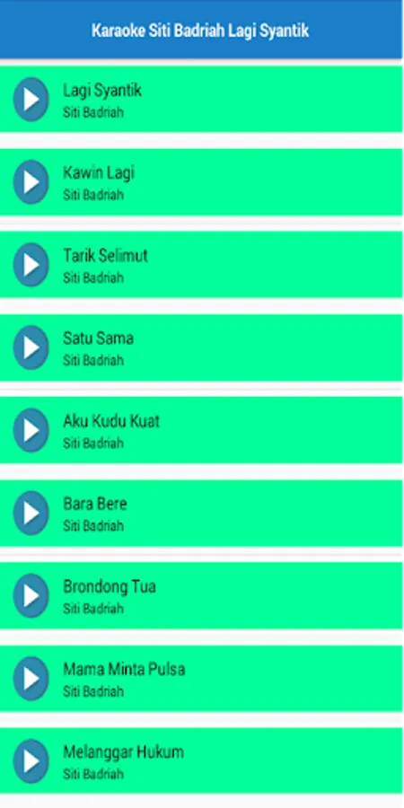 More songs Siti Badriah syantik a dangdut song recently released by Siti Badriah et al. Now no need to suffer anymore to find a karaoke song again syantik because we have prepared an application that berkumpulan lagu Indonesia, Indonesian dangdut karaoke application was deliberately created to simplify our fans Indonesian dangdut offline.