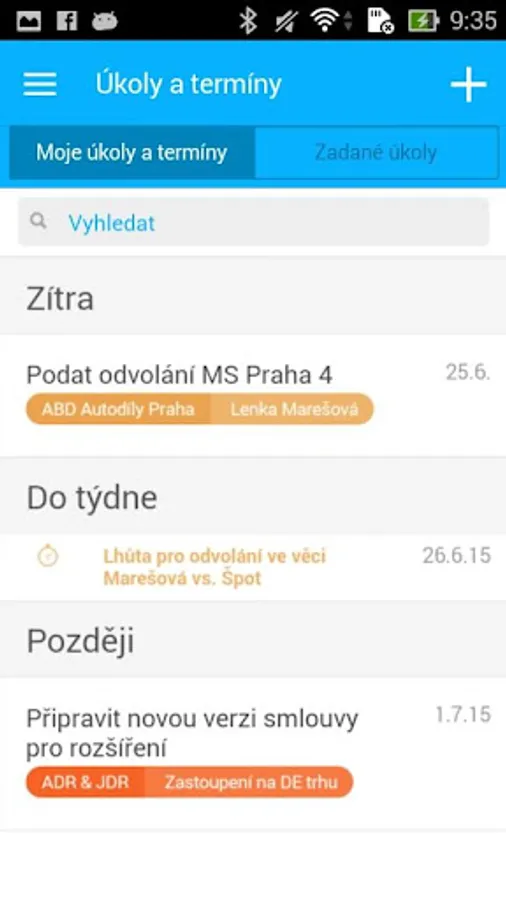 We allow you to manage the legal office and mobile phones. Keep track of tasks, view documents, watch the time of their appointment and simply evidujte work.