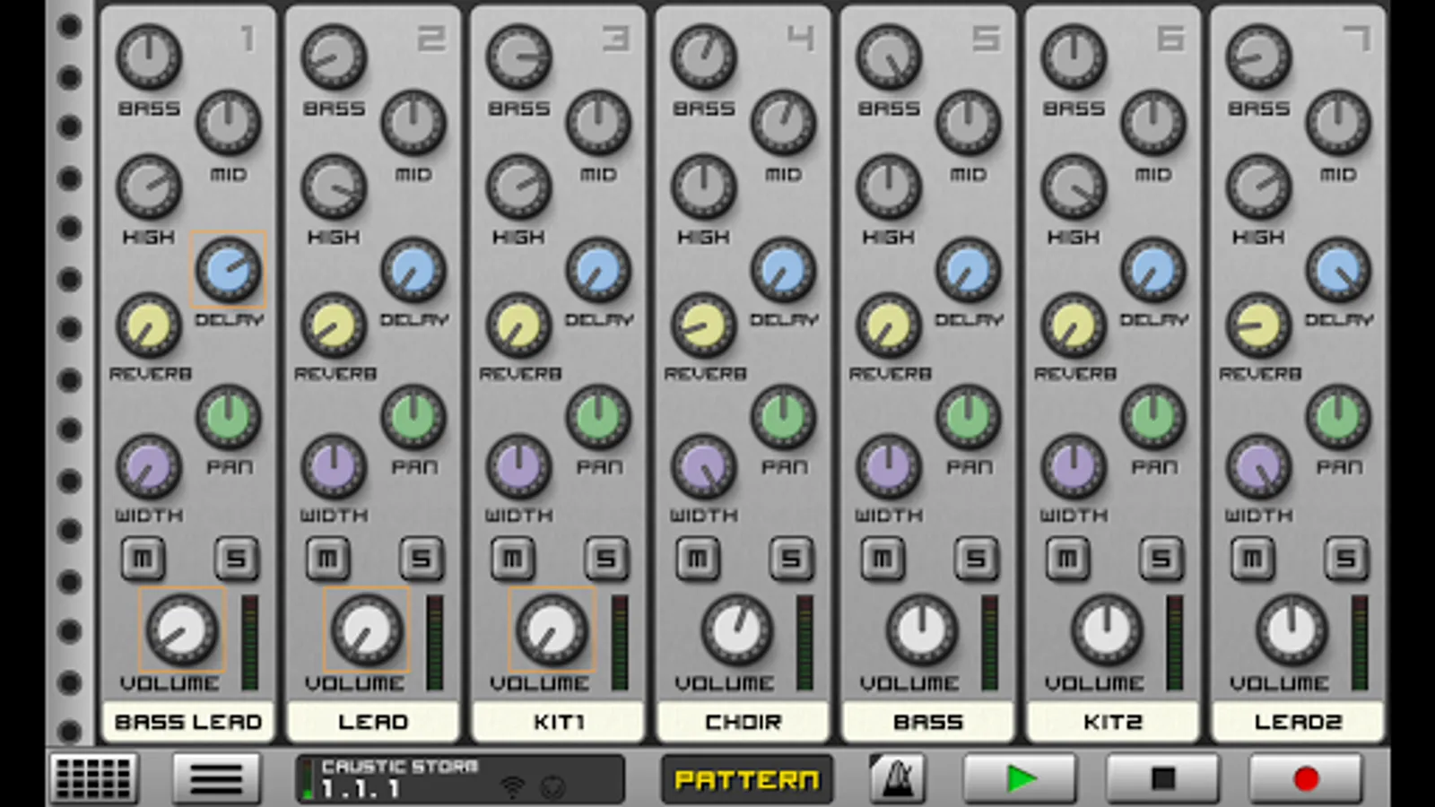 * Mixer desk with global Delay/Reverb effects