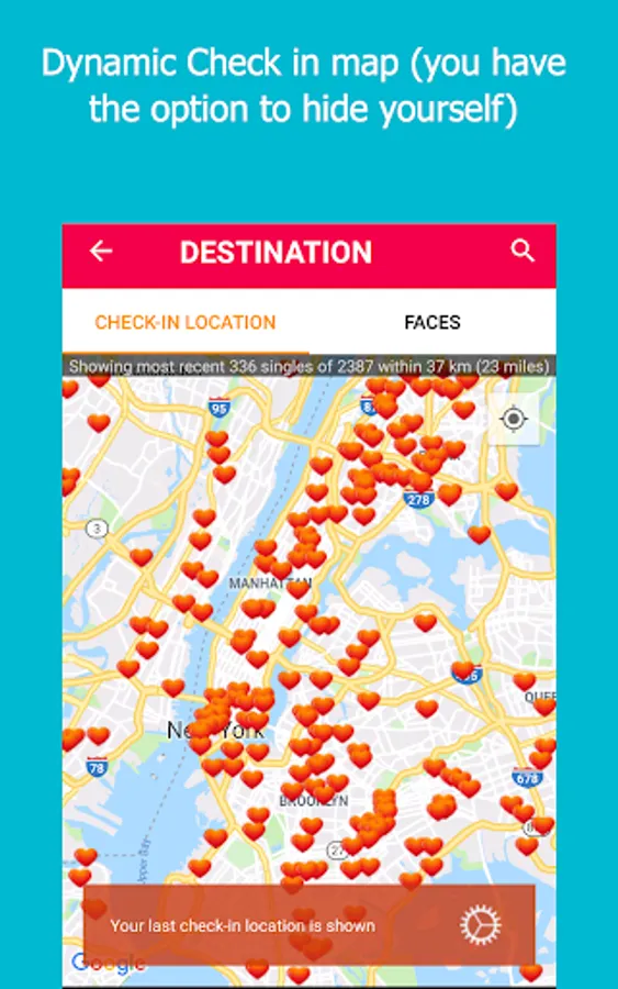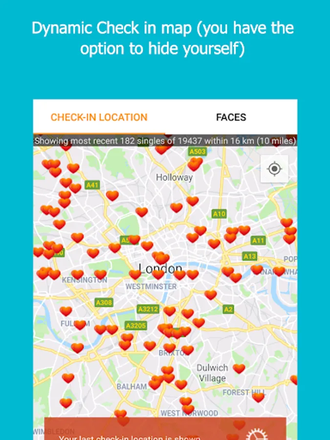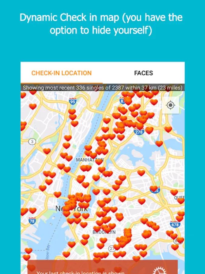 ★ GPS verified users are displayed as “heart pins” on our patent pending privacy protected “Check In Location” interactive map.