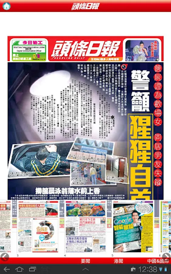 Download "Headline" HD mortgage-leaf App, which can be full page mode read the entire interface "Headline", page by page or jump page layout view and relive the same day news, saving convenience; better picture clip can enjoy and "Headline Daily" facebook link functions, enjoy brilliant sound and picture information, like a real newspaper in hand!