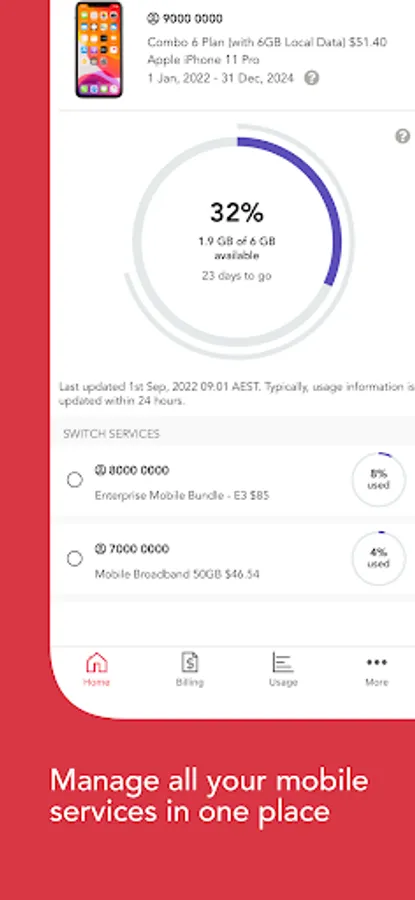 Get a full overview for all of your Singtel Enterprise mobile services: