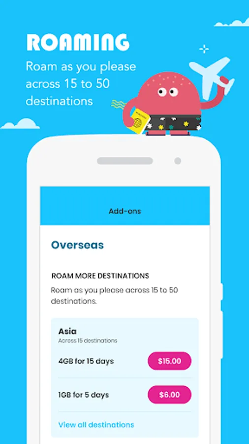• Travelling soon? Choose from our new roaming plans with big data at local prices to get connected overseas