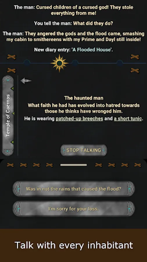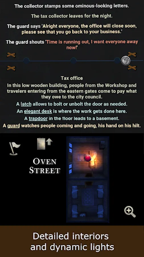 Mostly text-based, but showcasing detailed 2D backgrounds for its 500 locations, Escape from Norwood lets you free to explore the world and try to combine hundreds of items in any way you want, to trigger unexpected effects on the lives of its 200 characters. This freedom comes with simplicity: no keyboard ever shows up, simply tap on someone, something or somewhere to see the possible interactions and choose among them… for dozens of hours of fun and discovery.