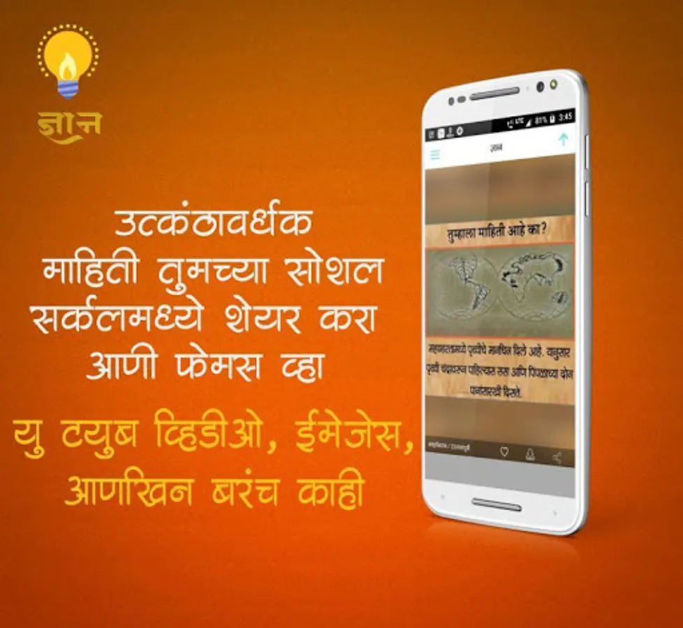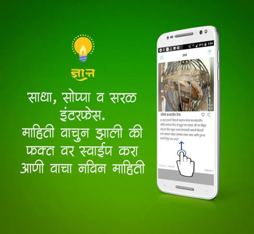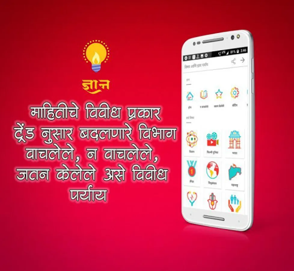 ज्ञान- ह्या app मध्ये तुम्हाला रोज अनेक प्रकारची वेगवेगळी माहिती मिळेल.