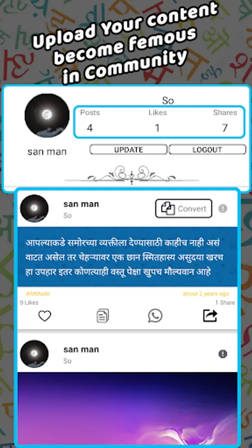 This app also allows you to post your creative design such as Background Designs , Banner Designs, PNG Assets, Trending text messages and many more...