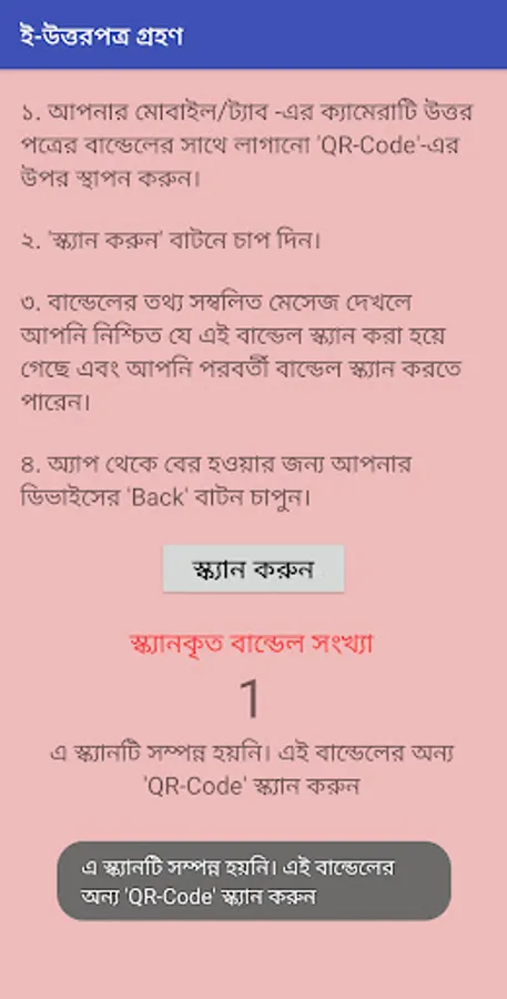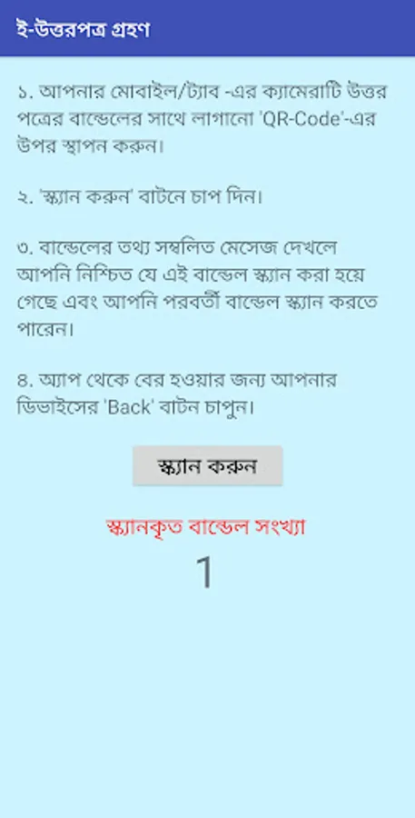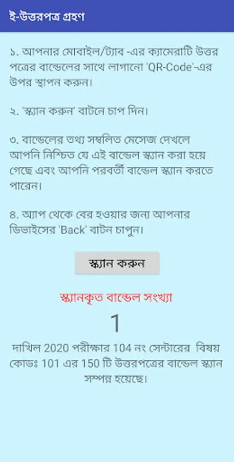 The application is made to receive and log answer scripts of public examinations taken by Bangladesh Madrasah Education Board. This application works by scanning QR code that is located on the top of answer-scripts' bundle and logs the data. Then, these data are collected from the devices.