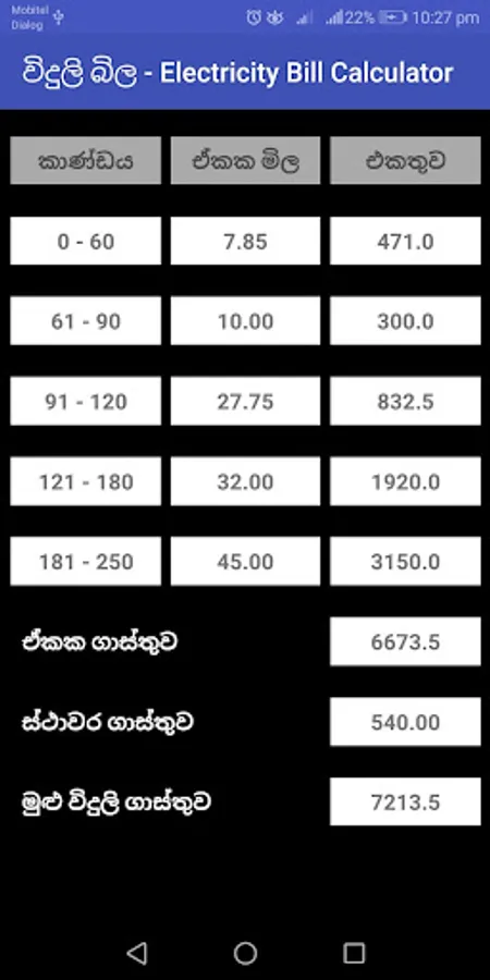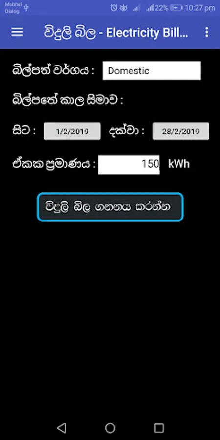 Note : In this application, all calculations are done based on the tariff rate used by CEB, LECO & PUCSL.