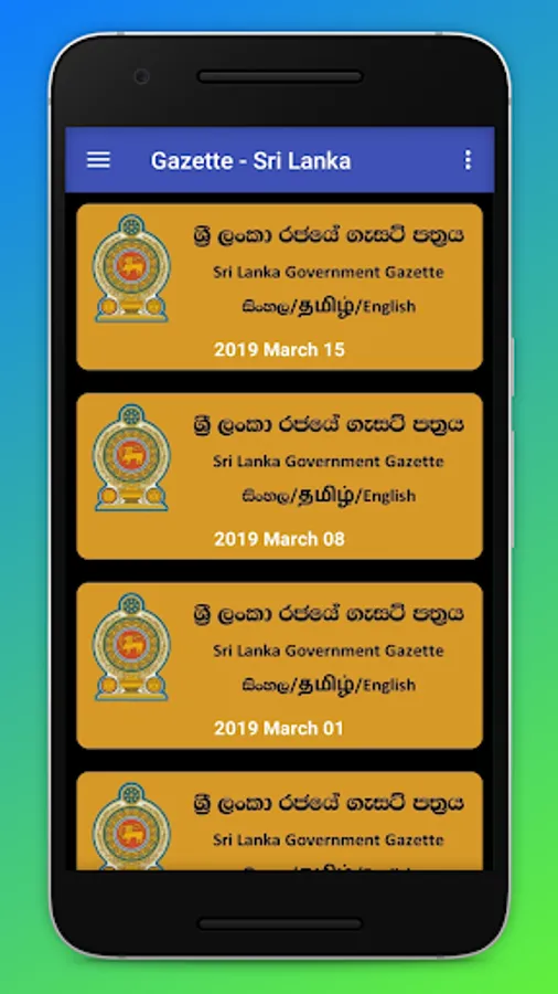 > Gazettes in all three languages are in one application