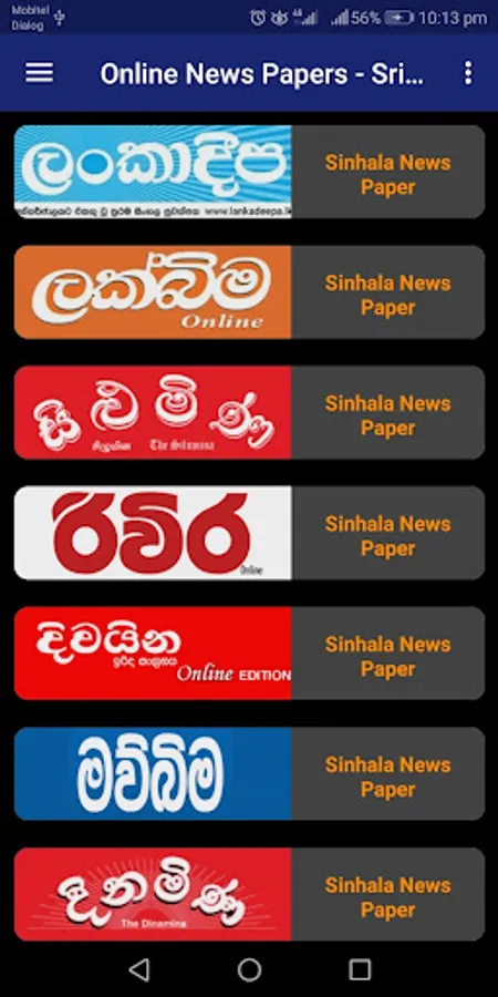 Lankadeepa, Lakbima, Silumina, Rivira, Divaina, Mawbima, Dinamina, Ravaya, Ada, Vidusara