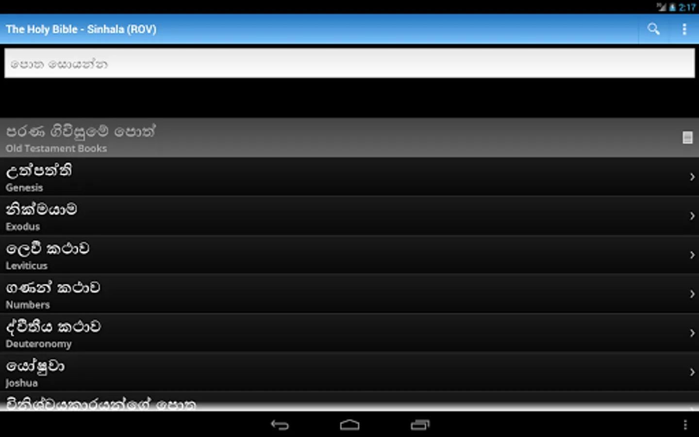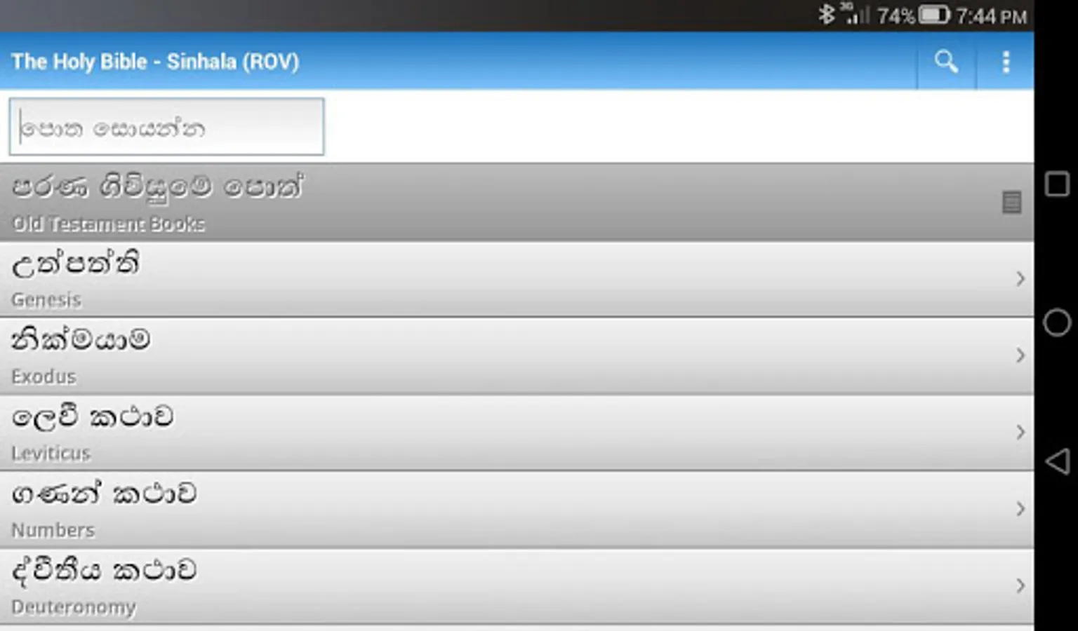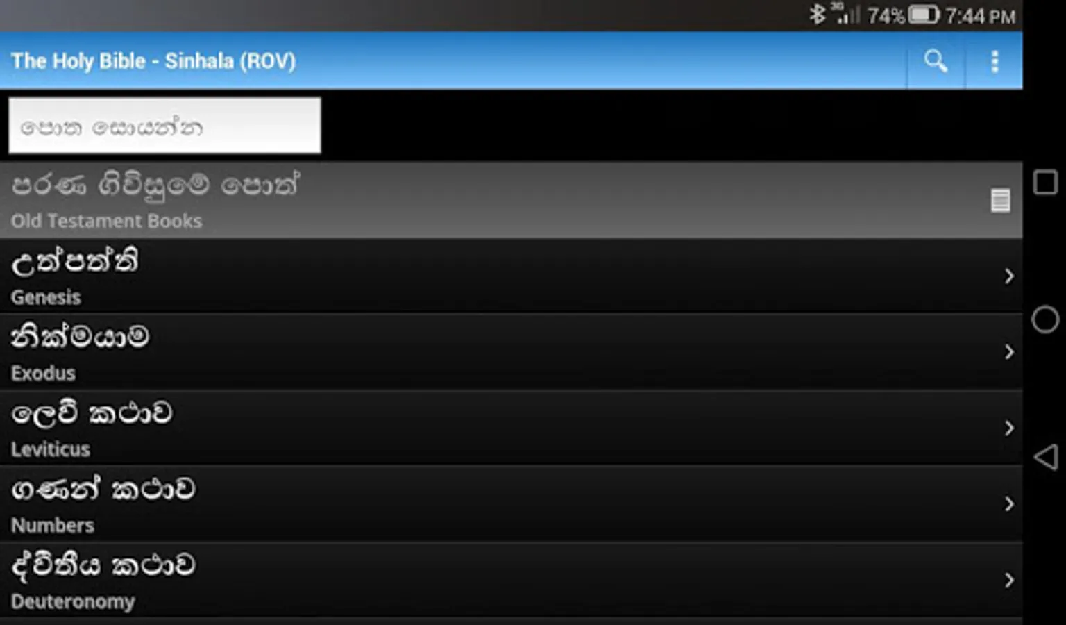 The Holy Bible ROV (Revised Old Version) 1995 is now available in Sinhala language for those who are interested in introducing the Bible on their Android devices. This application is developed by the Ceylon Bible Society, the sole distributor, publisher & the owner of the text of the Sinhala Bible published on 1995.