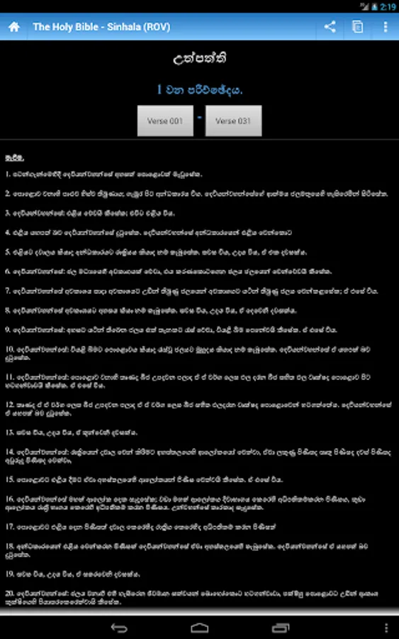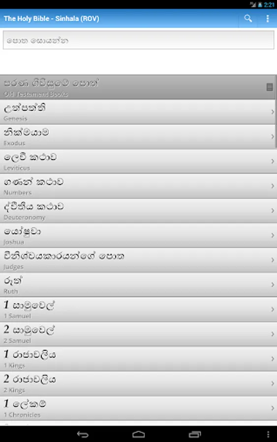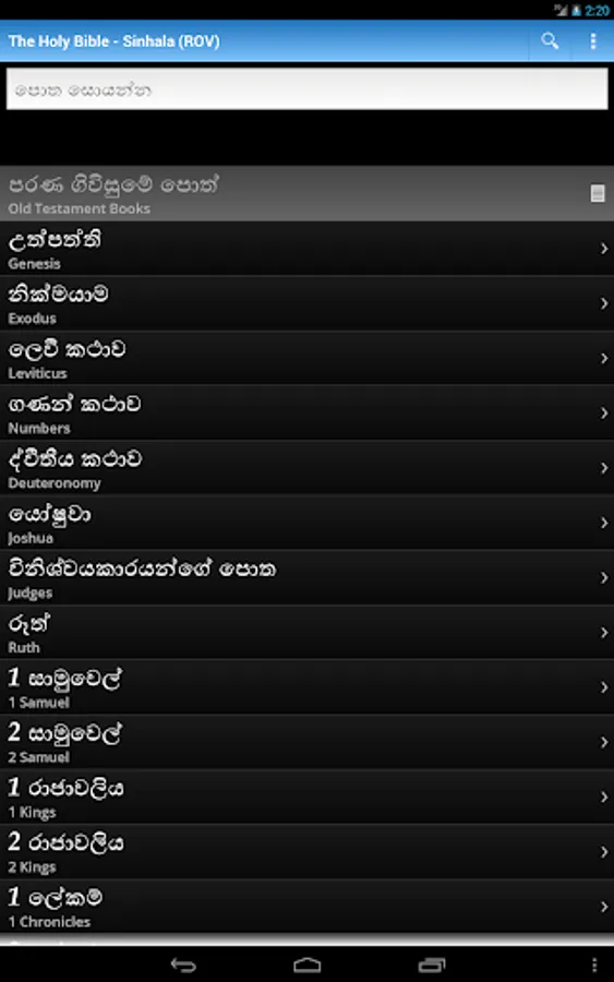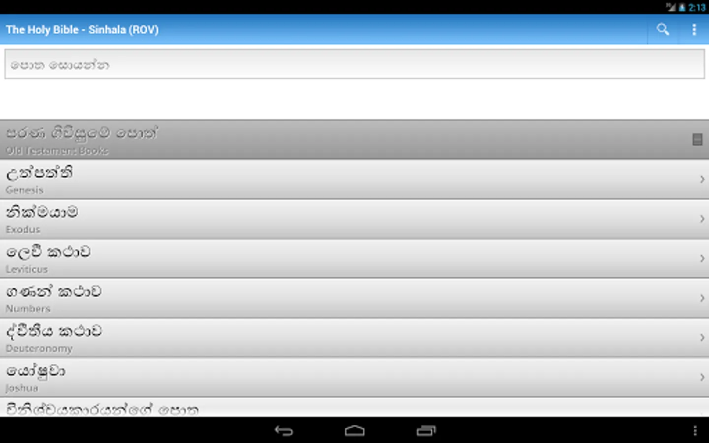 The Holy Bible ROV (Revised Old Version) 1995 is now available in Sinhala language for those who are interested in introducing the Bible on their Android devices. This application is developed by the Ceylon Bible Society, the sole distributor, publisher & the owner of the text of the Sinhala Bible published on 1995.