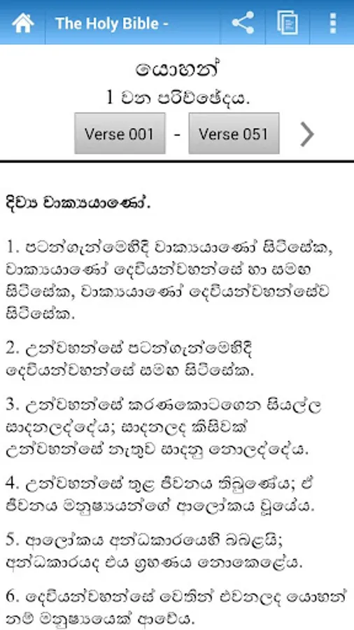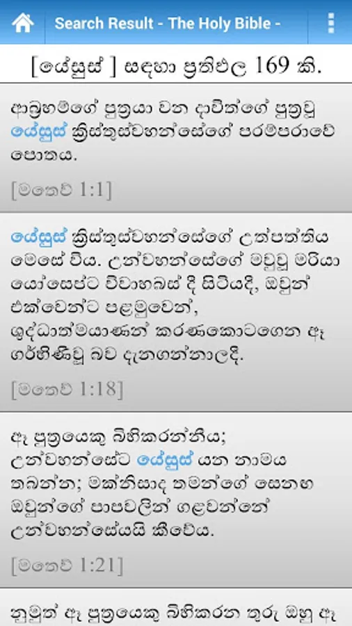 © ශ්රී ලංකා බයිබල් සංගමය විසින් 1995 වසරේ ප්රකාශිත ශුද්ධ බයිබලය (සංශෝධිත පැරණි අනුවාදය) සිංහල භාෂාවෙන් ඇන්ඩ්රොයිඩ් මෘදුකාංගයක් ලෙස දැන් ඔබට නොමිලේ ලබාගත හැක. මෙම සිංහල බයිබල් මෘදුකාංග ඒකකය සාදන ලද්දේ දේව වචනය ප්රචලිත කිරීමේ අභිප්රායෙන් හා බයිබල් අධ්යයනය කරන්නන්ට උපකාරයක් වීම සඳහා බව කරුණාවෙන් සලකන්න.