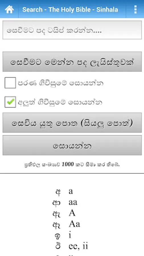 ✓ ශුද්ධ බයිබලය තුළින් පහසුවෙන් බයිබල් පද සෙවිය හැක.