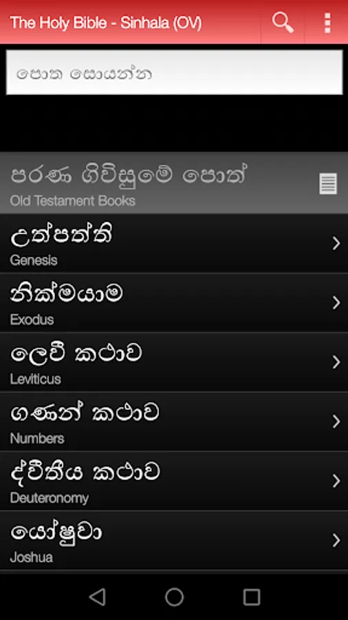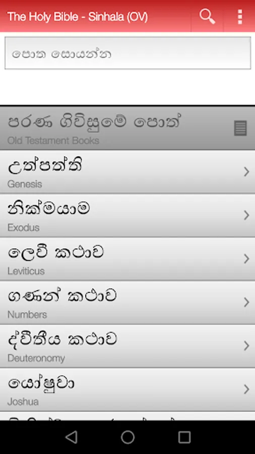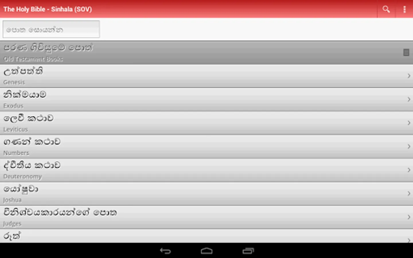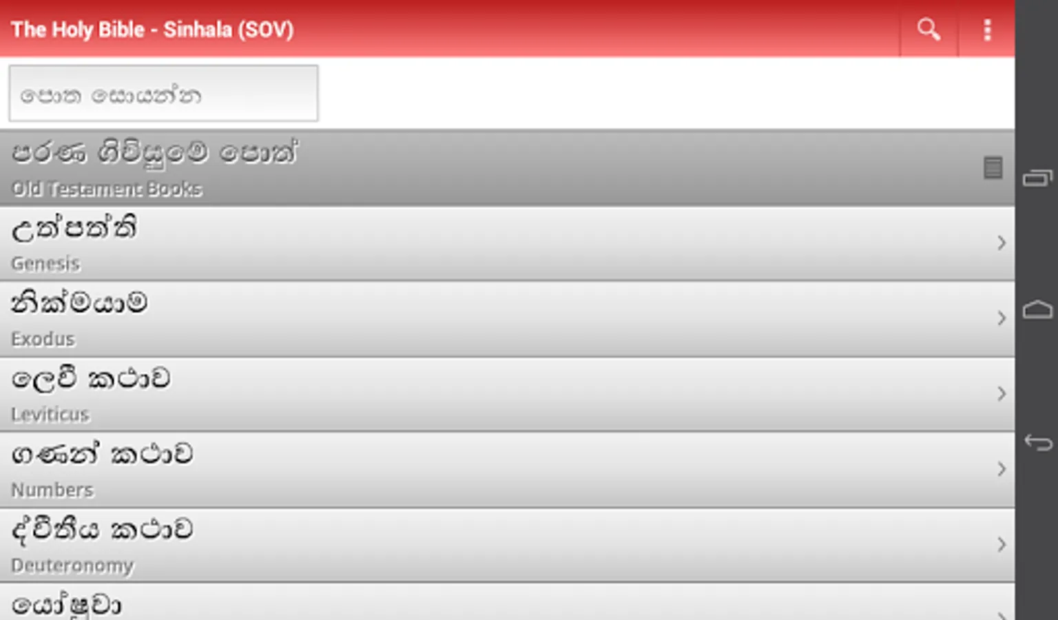 The Holy Bible OV (Old Version) 1938 is now available in Sinhala language for those who are interested in introducing the Bible on their Android devices. This application is developed by the Ceylon Bible Society, the sole distributor, publisher & the owner of the text of the Sinhala Bible published on 1938.