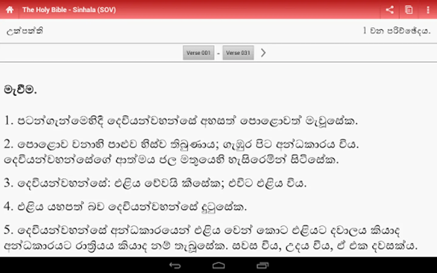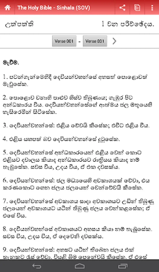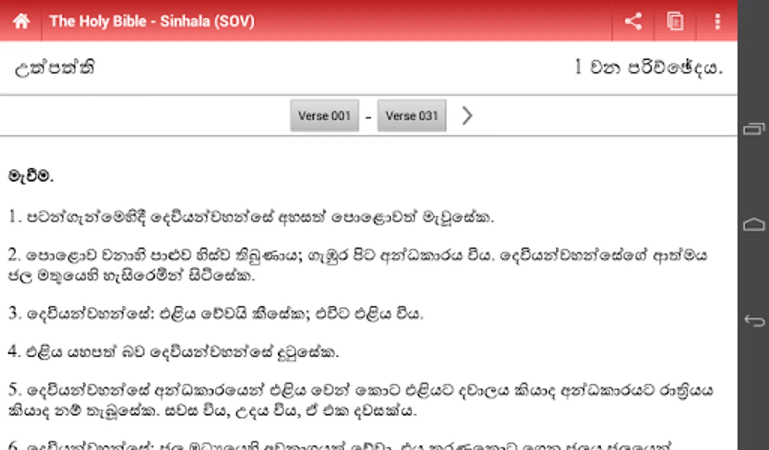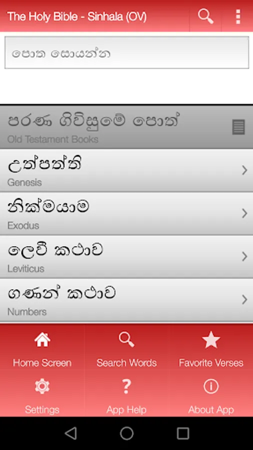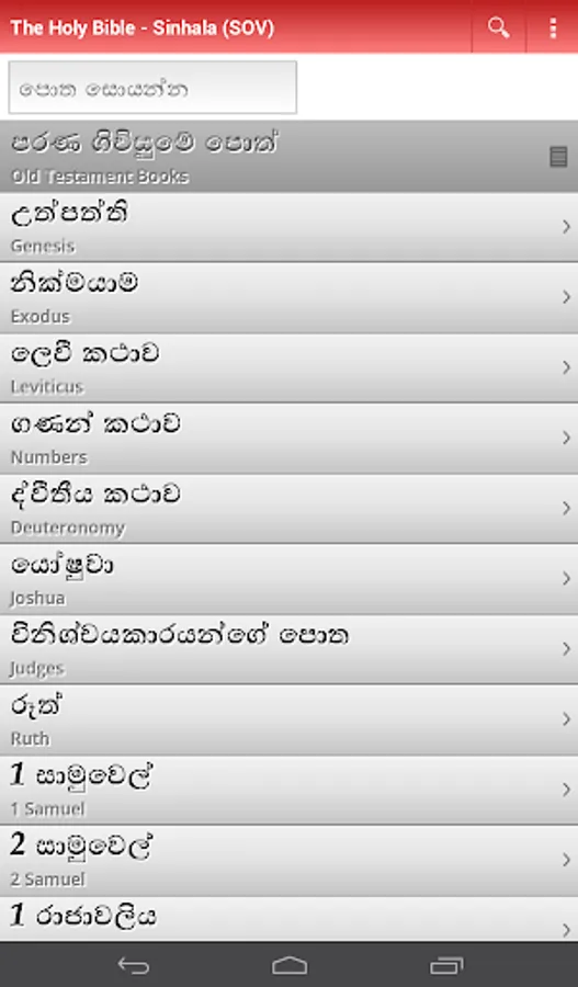 The Holy Bible OV (Old Version) 1938 is now available in Sinhala language for those who are interested in introducing the Bible on their Android devices. This application is developed by the Ceylon Bible Society, the sole distributor, publisher & the owner of the text of the Sinhala Bible published on 1938.