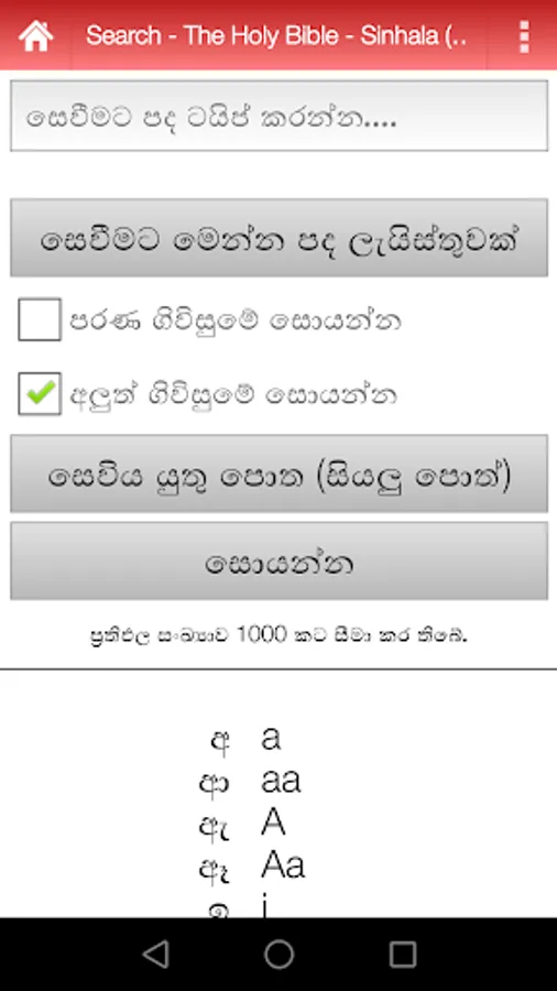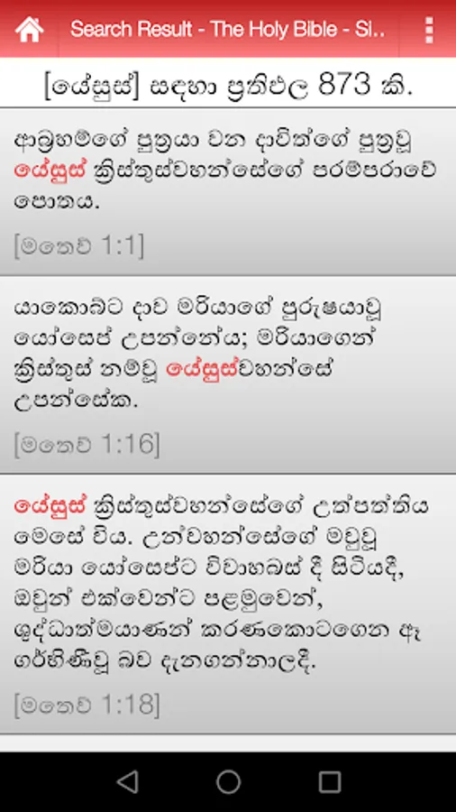 ✓ ශුද්ධ බයිබලය තුළින් පහසුවෙන් බයිබල් පද සෙවිය හැක.