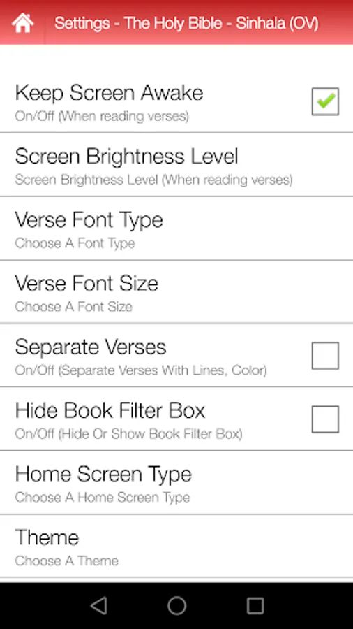 ✓ Keep screen awake when reading the bible verses (On / Off).